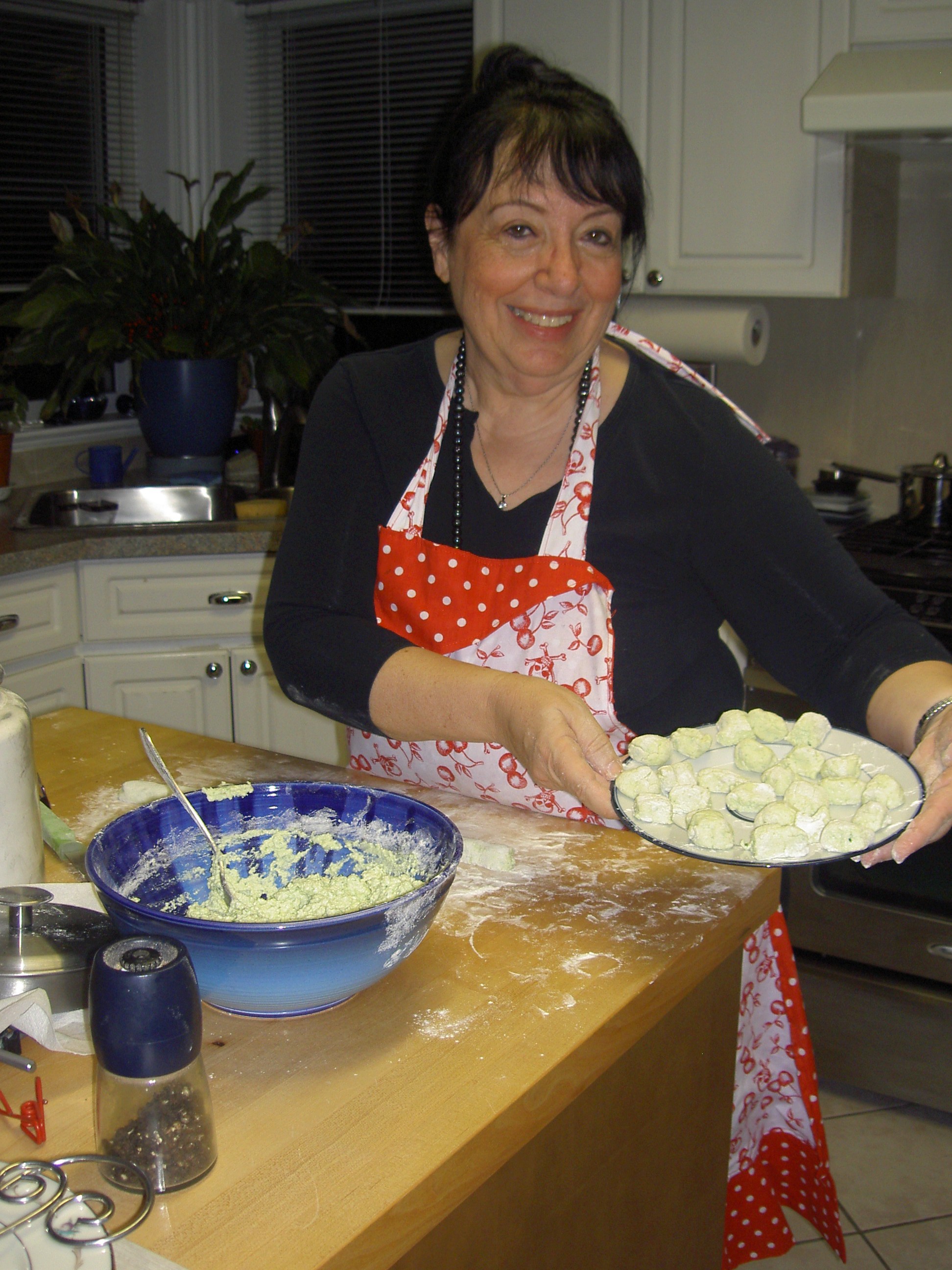 Detta 12/02/2012 1944 × 2592 in How lucky am I??? (part two… birthday dinner at Detta’s!) She looks so sweet! But take a closer look… yes, those are SKULLS on her apron LOL. Ricotta gnocchi at formation stage…